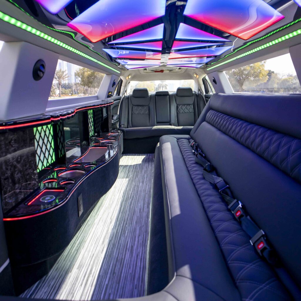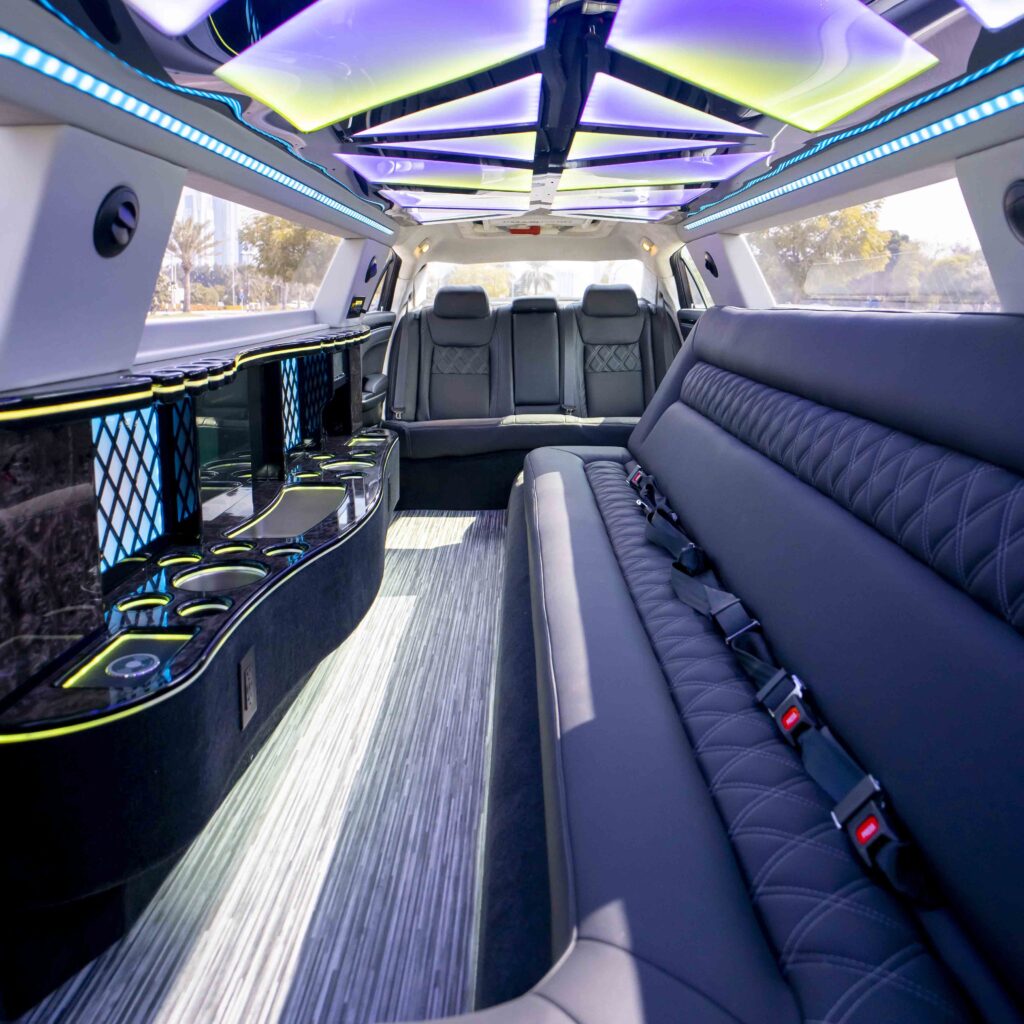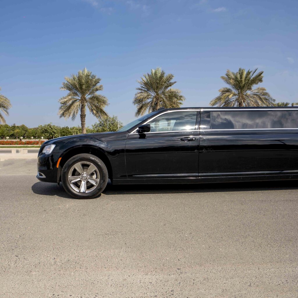 Experience unparalleled luxury and elegance on your wedding day with our Chrysler Black Pearl Limo rental in Dubai. Enjoy the comfort and opulence of this stretch limousine, the perfect addition to any special occasion.