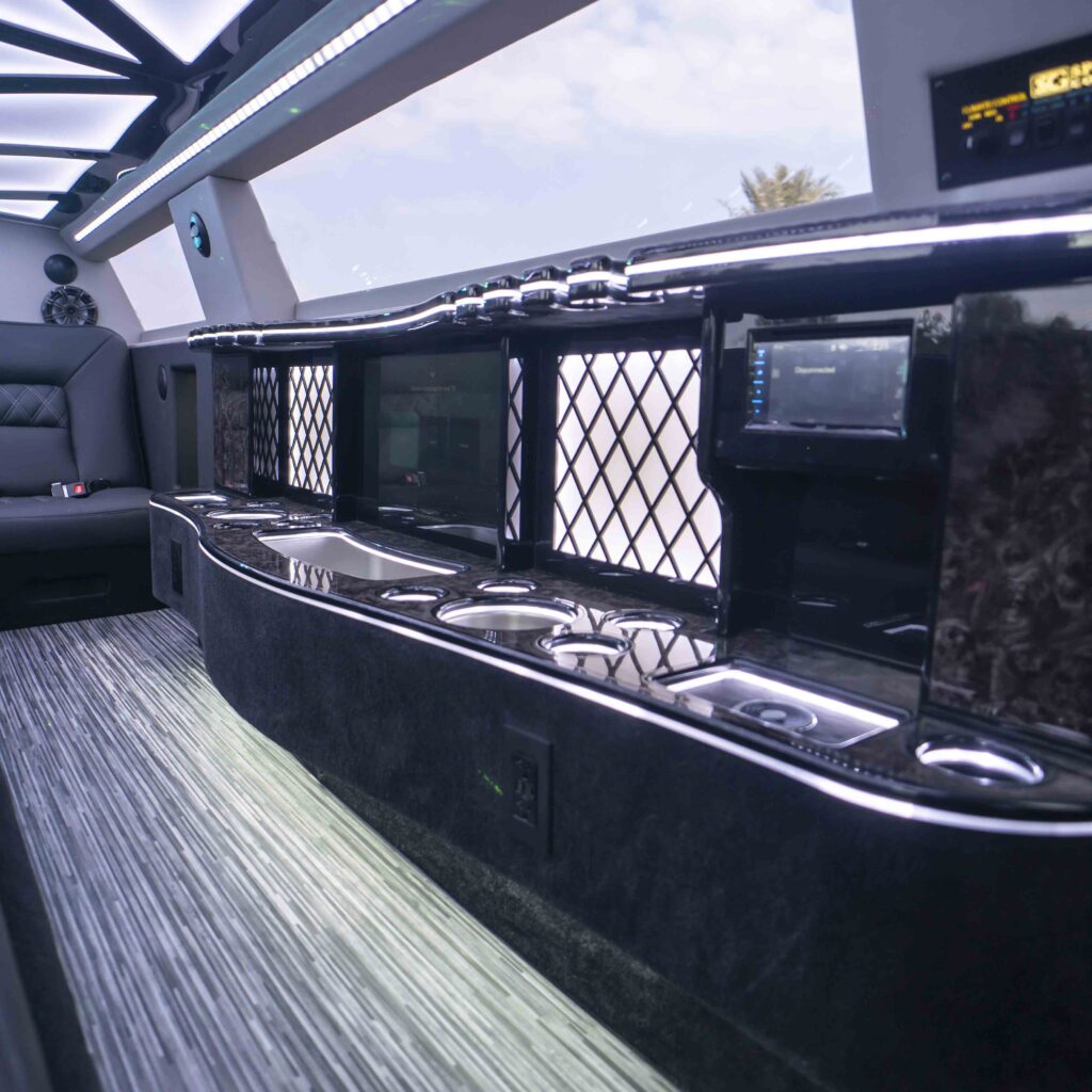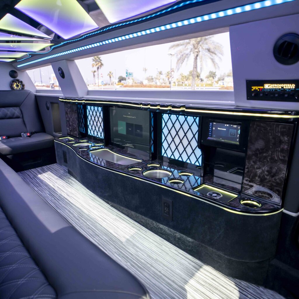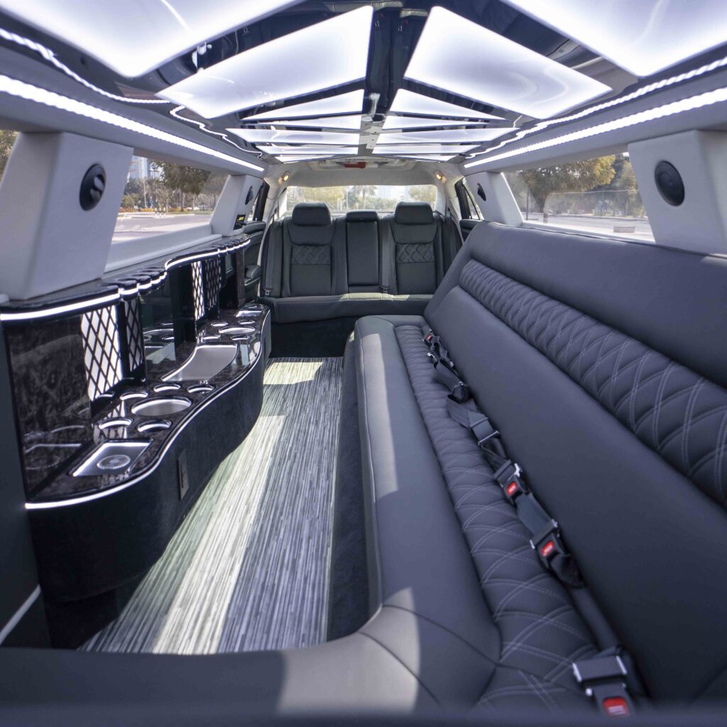 Experience unparalleled luxury and elegance on your wedding day with our Chrysler Black Pearl Limo rental in Dubai. Enjoy the comfort and opulence of this stretch limousine, the perfect addition to any special occasion.