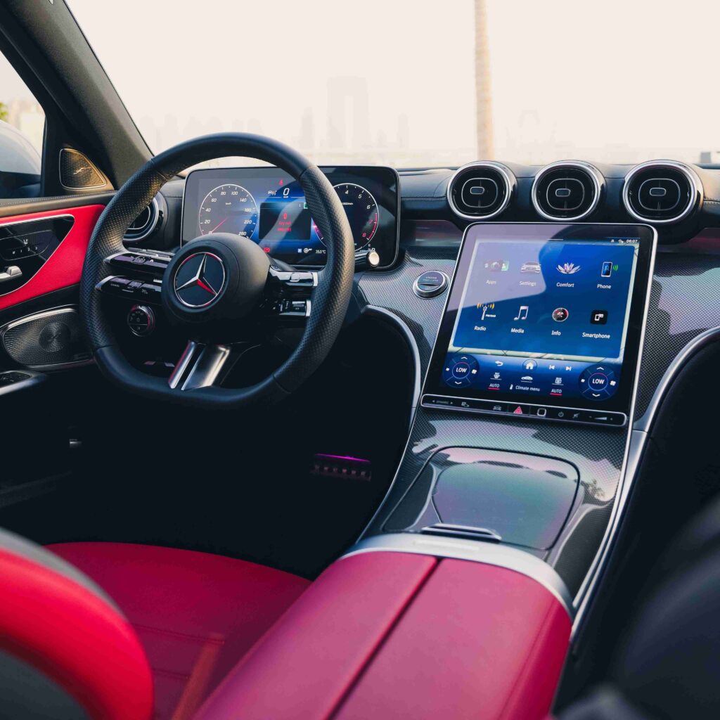 Rent the sophisticated Mercedes C300 in Dubai with zero deposit and flexible rental options (monthly or weekly). Experience the perfect blend of elegance and performance with this luxurious sedan for a personalized self-drive experience.